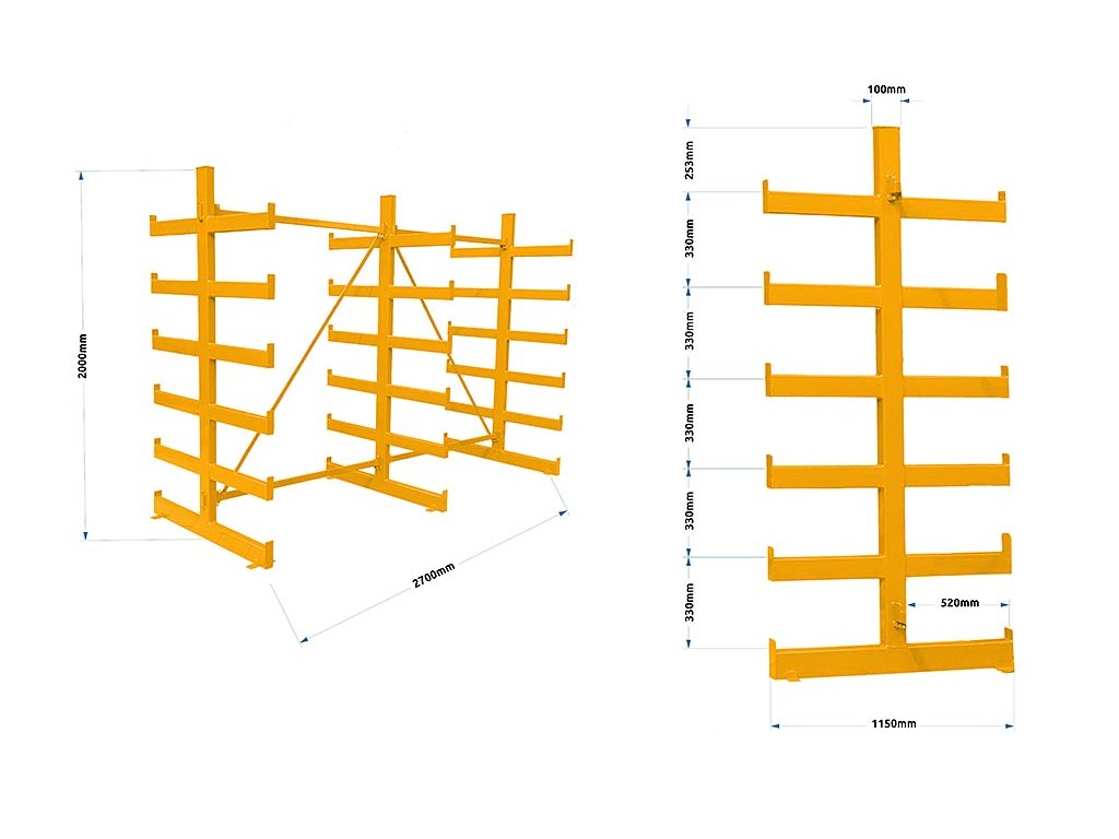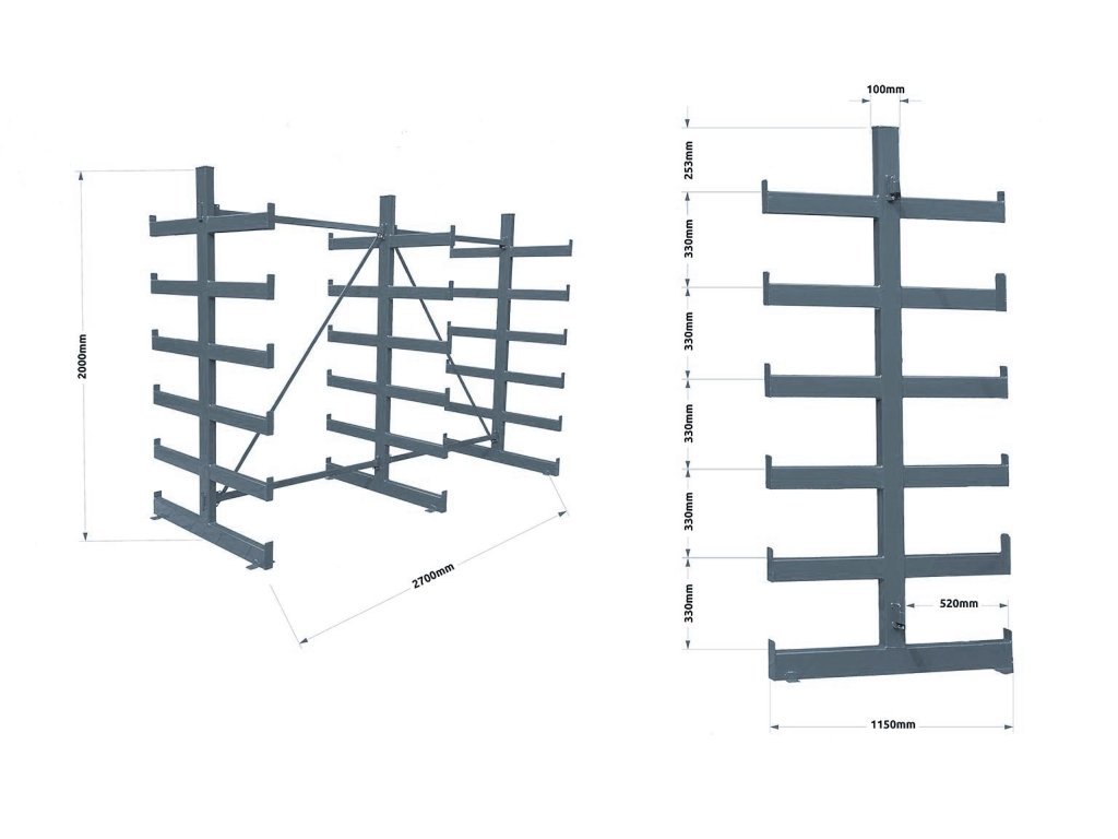 Konzolový regál Trestles RK 2000x2700x1150, nosnosť 7200 kg, obojstranný