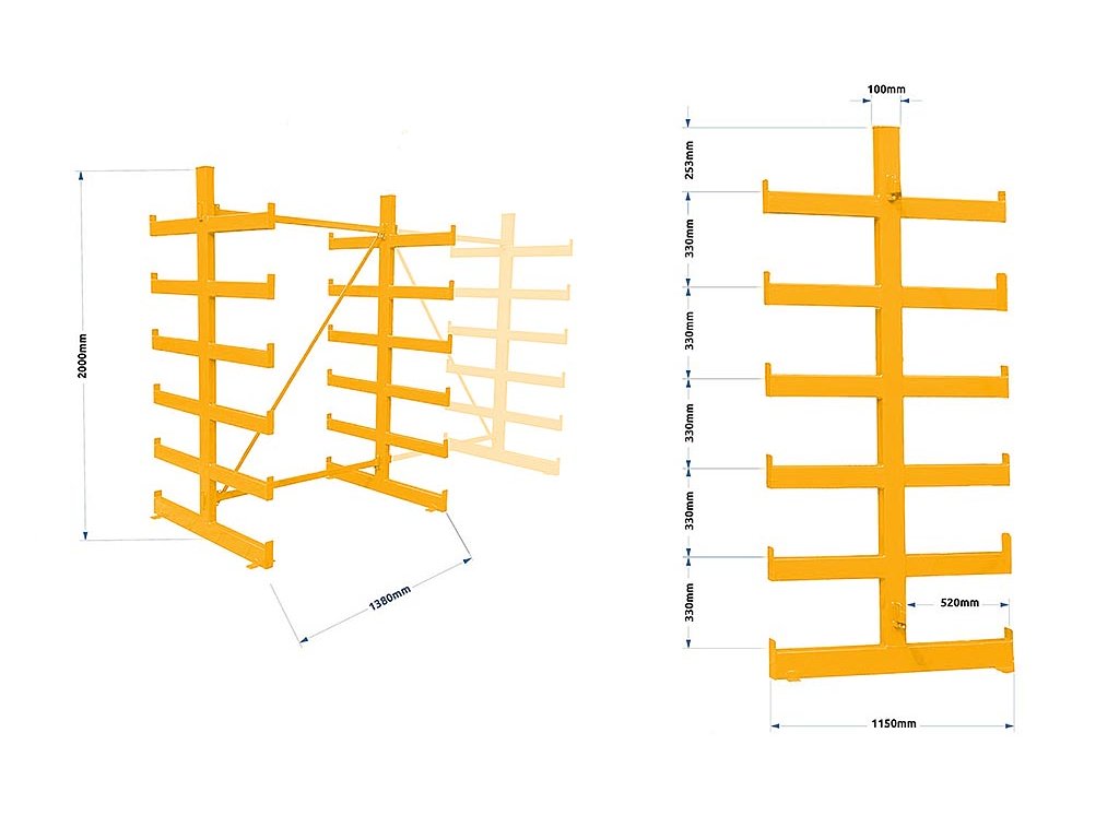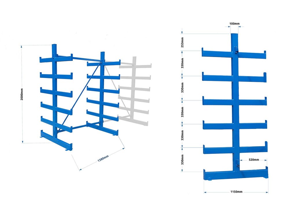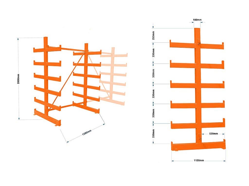Polovičný konzolový regál Trestles RK 2000x1380x1150, nosnosť 4800 kg, obojstranný
