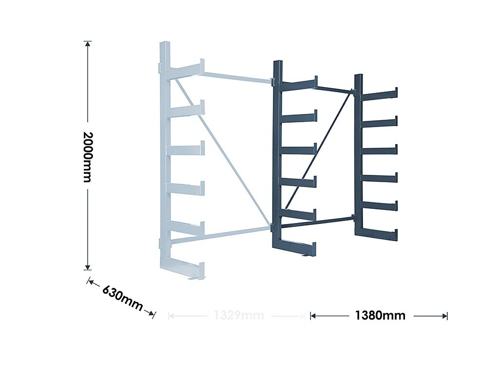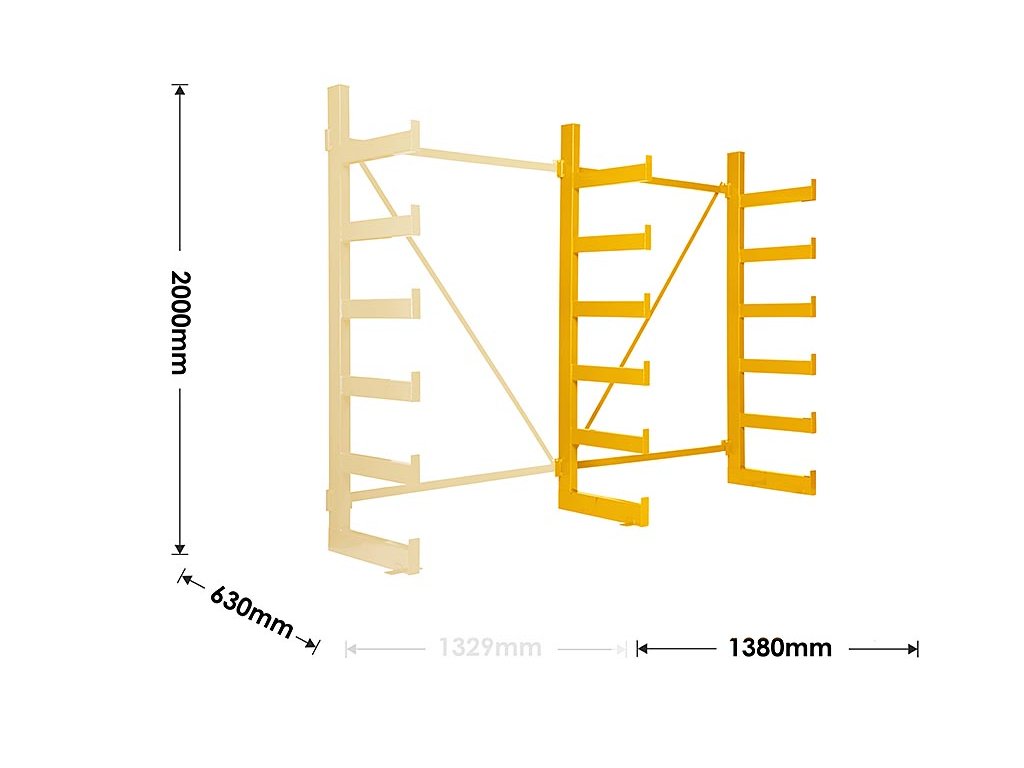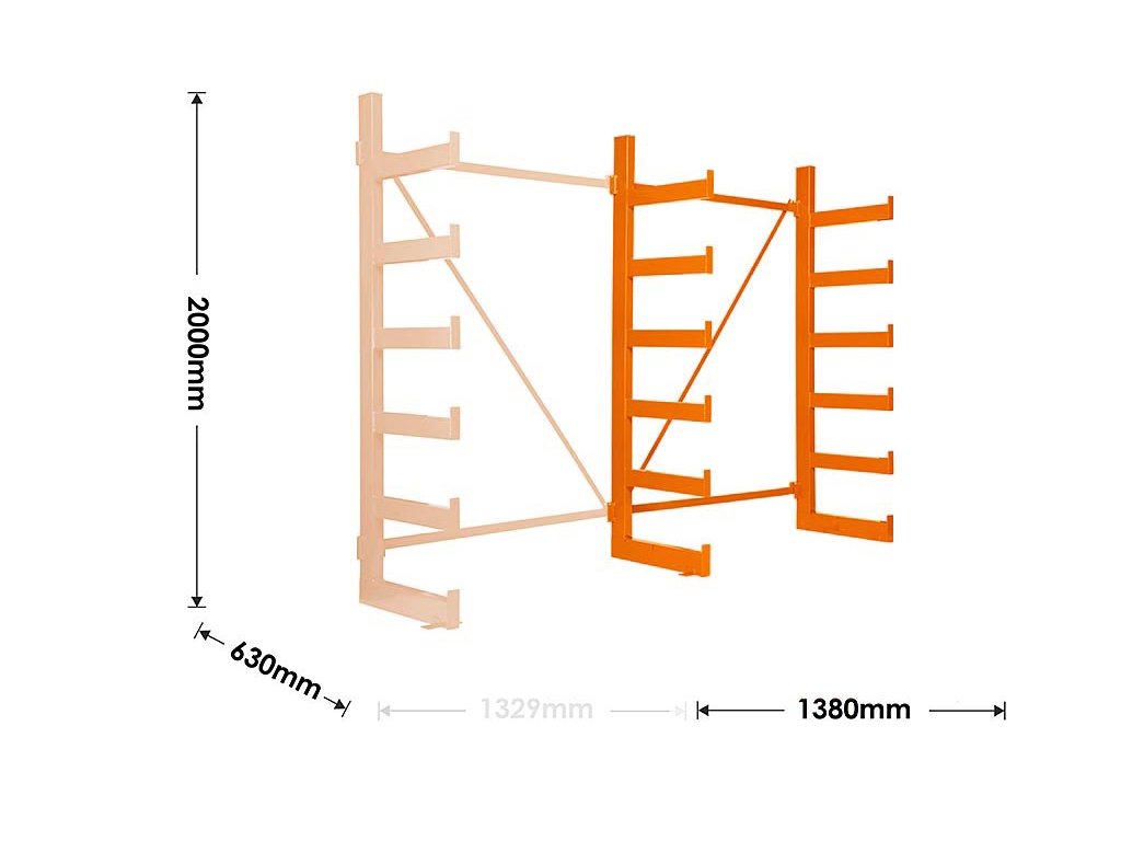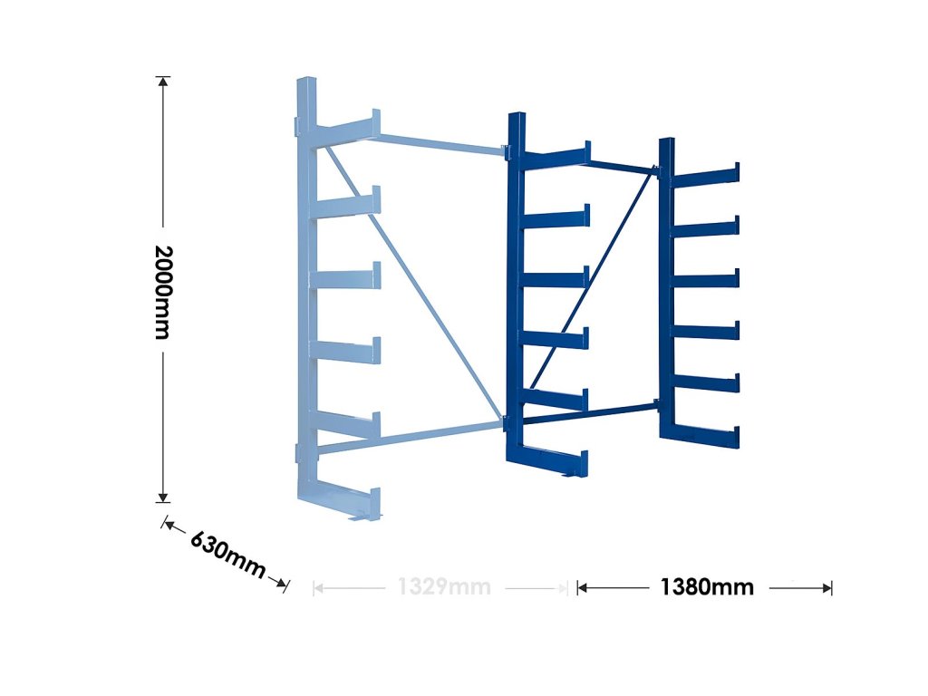 Polovičný konzolový regál Trestles RK 2000x1380x630, nosnosť 2400 kg, jednostranný