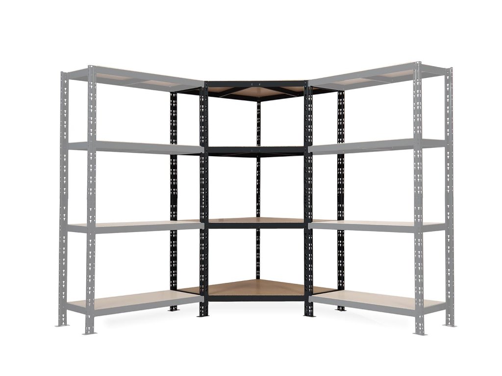 Rohový policový záťažový regál Trestles RTCL 1800x900x400, nosnosť 800 kg, 4 police